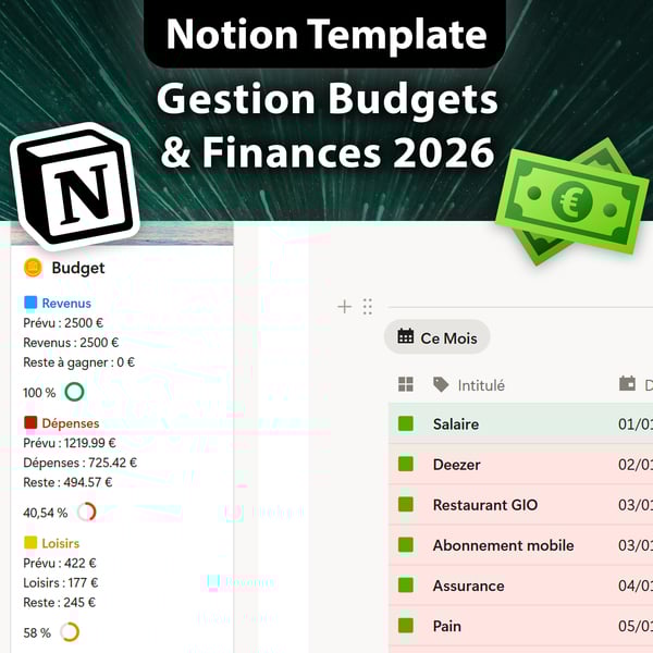 Notion Template : Gestion Budgets, Gestion Finances 2026