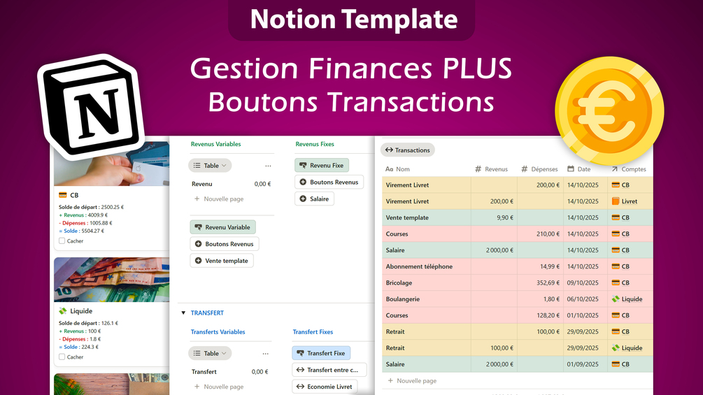 Notion Template - Gestion Finances Simple et Plus